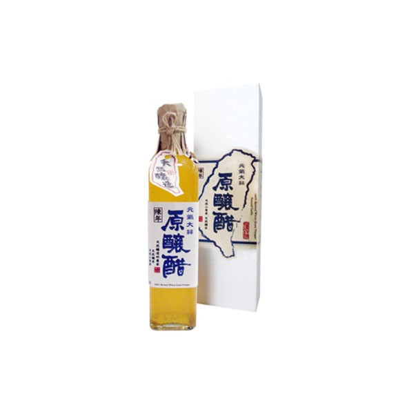 係採用美國小麥與台灣糯米,並使用合歡山能高瀑布地下125米純淨泉水,混合置放於手工陶缸中經過天然發酵一年以上,過程中絕不添加任何添加物。擁有30年釀醋經驗的釀醋達人-陳長闊師傅精心釀製,傳承日式的釀醋工法,不使用任何醋酸菌或麴菌發酵,而是採用小麥草中的酵素進行自然發酵!這就是【原釀醋】的生成。